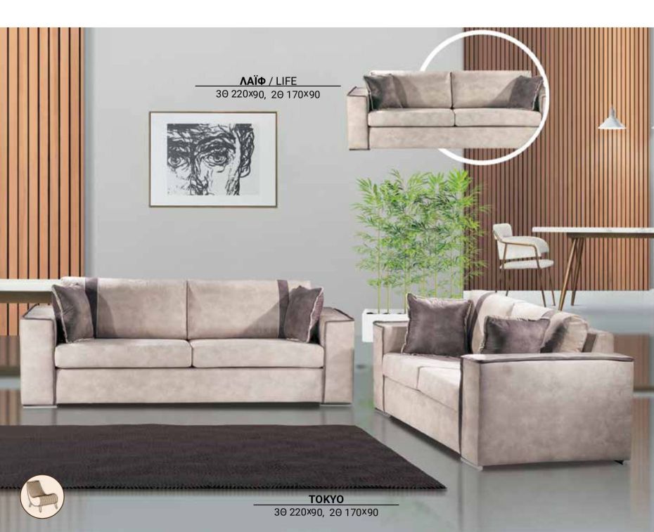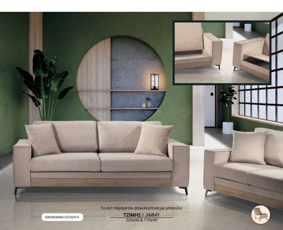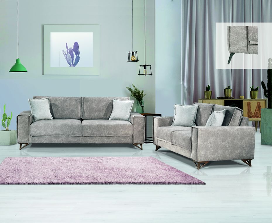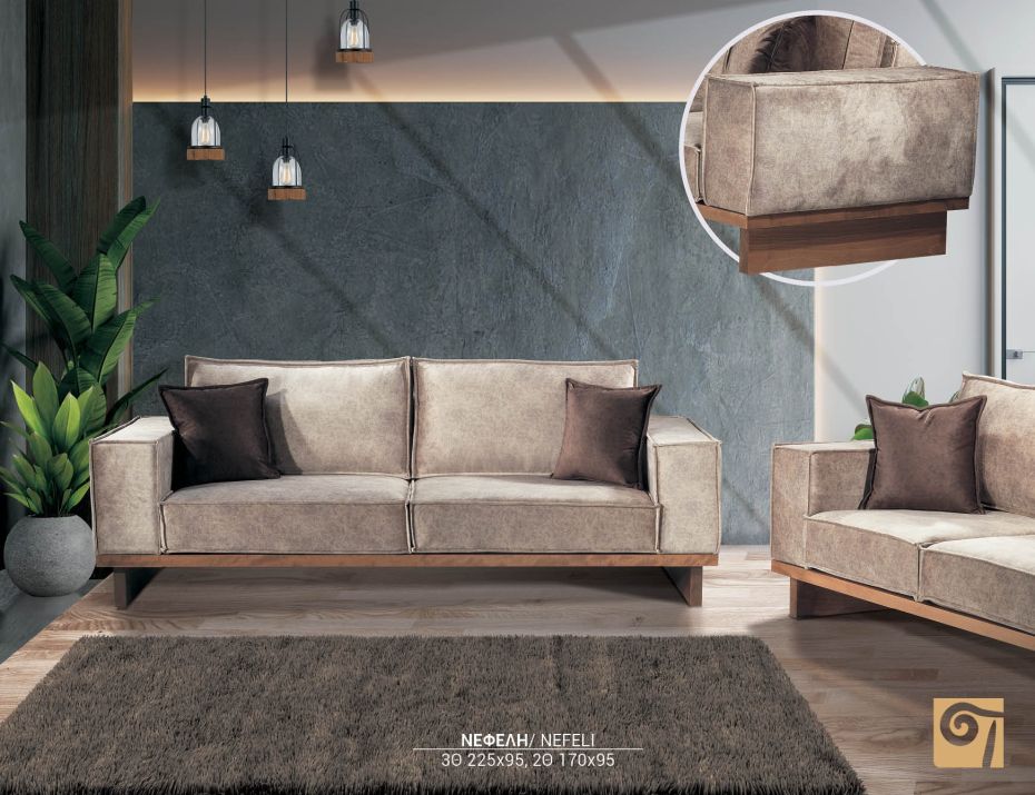 Ιδιαίτερου σχεδιασμόυ σετ τριθέσιου και διθέσιου καναπέ με επένδυση από ύφασμα microfibra easy clean.Διαθέτουν ιδιαίτερα αναπαυτικό κάθισμα, καπιτονέ σχεδίαση στα μπράτσα και αποσπόμενα μαξιλάρια πλάτης και καθίσματος. Μία μοντέρνα επιλογή ιδανική για κάθε χώρο.